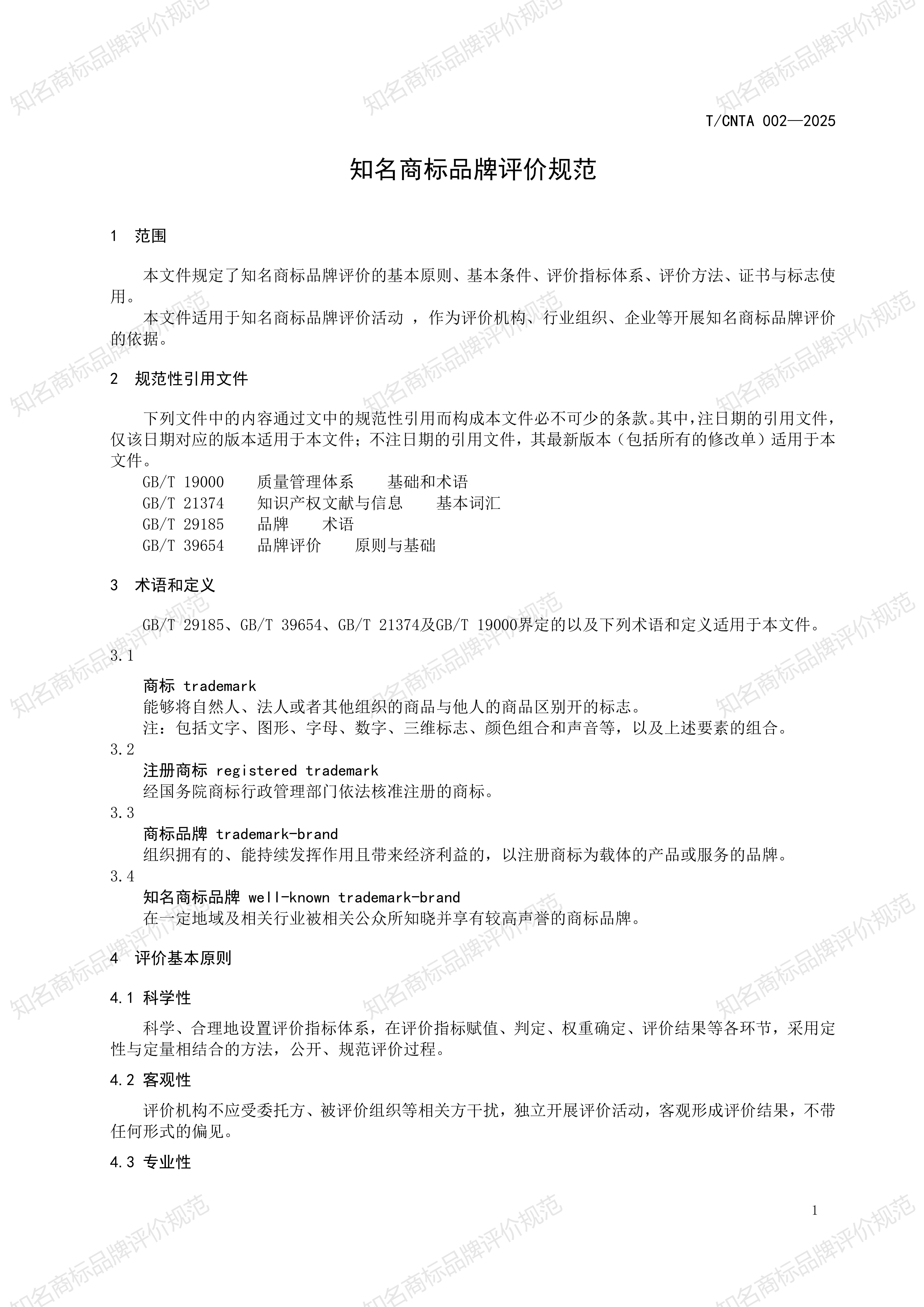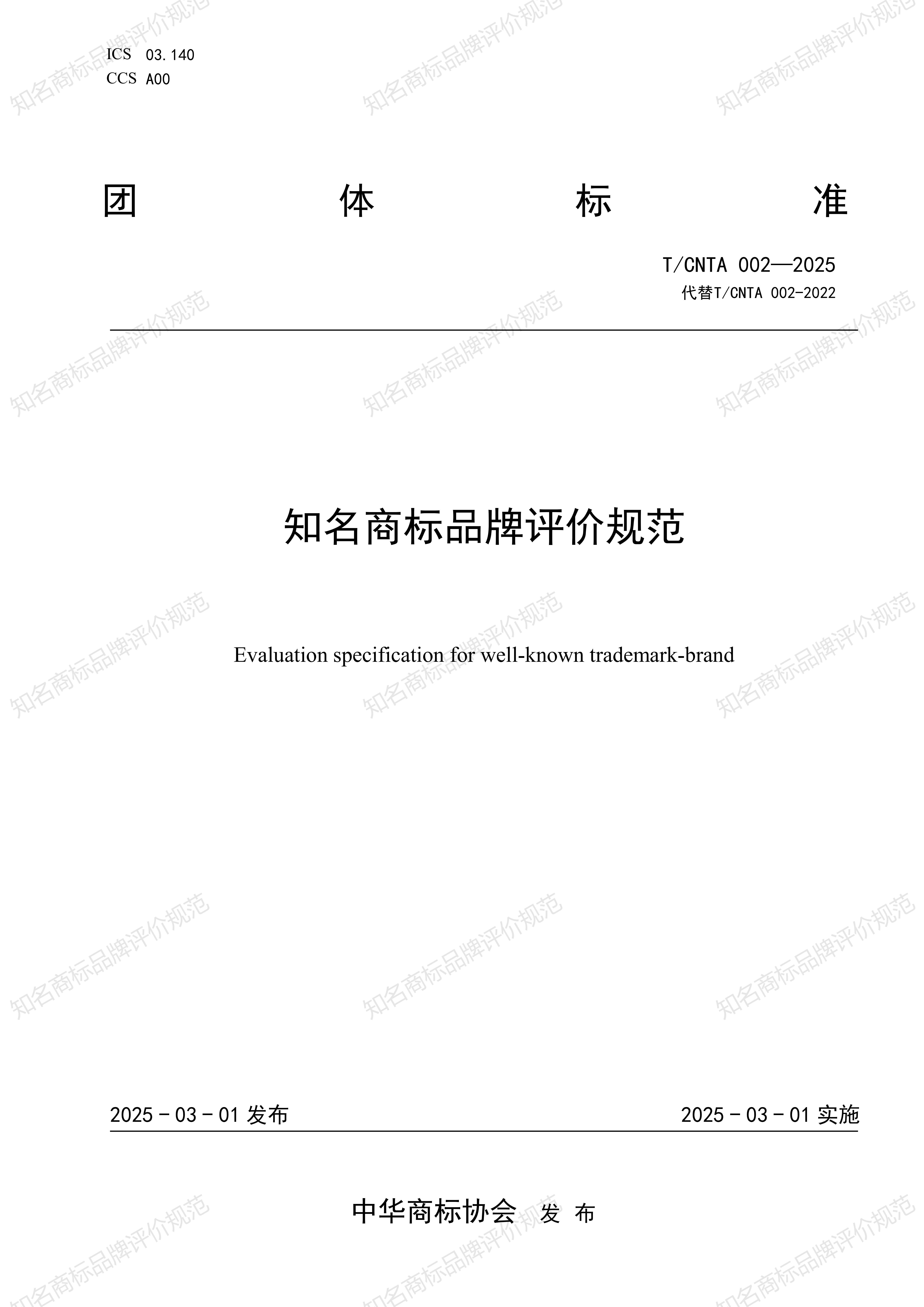 T-CNTA 002-2025 知名商标品牌评价规范-2025