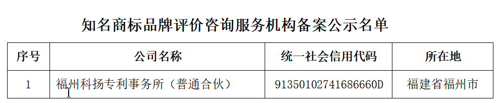 根据中华商标协会《知名商标品牌评价工作管理办法》《知名商标品牌评价咨询服务机构备案管理办法》有关规定,以下知名商标品牌评价咨询服务机构已向我会提交从事知名商标品牌评价咨询服务工作的备案申请,经初步审核基本符合备案条件,现予以公示。